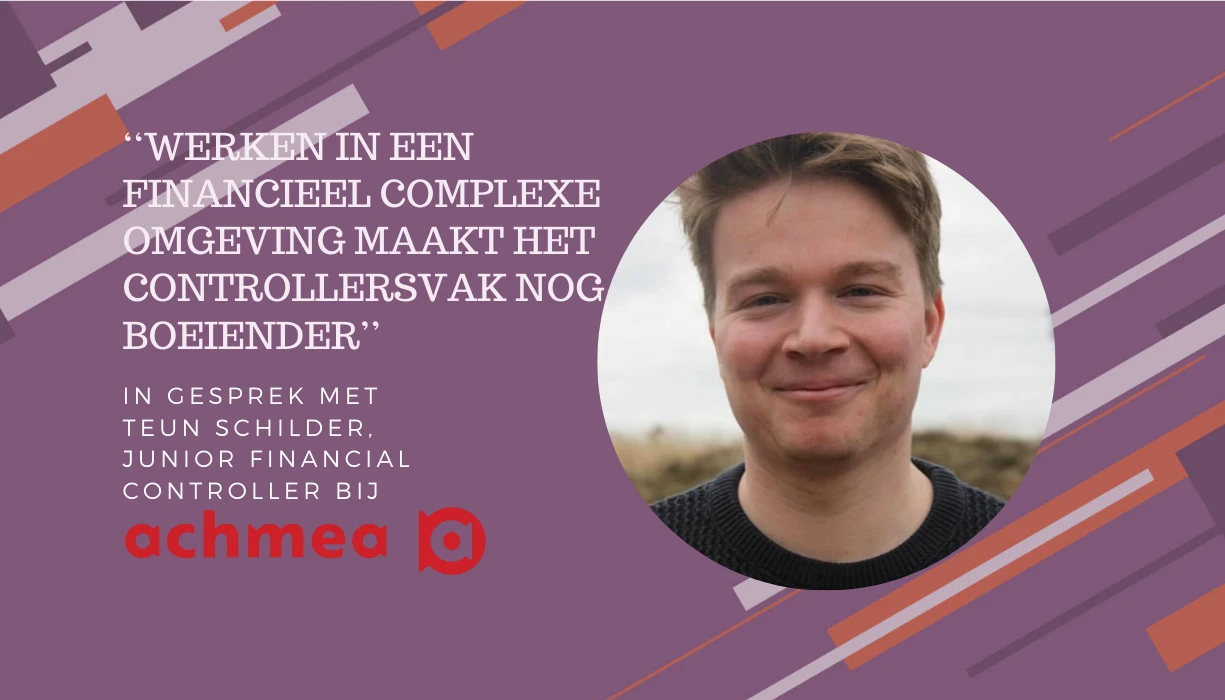 Teun Schilder is Junior Financial Controller bij Achmea. Tijdens zijn studie switchte hij van Econometrie naar Business Economics. ‘Cijfers hebben me altijd getrokken en een beetje puzzelen met getallen vind ik geweldig. Het is leuk om te doorgronden hoe financiële stromen lopen en te doorzien wat de effecten zijn van bijvoorbeeld een rentestijging op je balans. Ik ben een jaar penningmeester geweest van een studentenvoetbalvereniging. Met het uitbreken van het coronavirus moet je dan aan allerlei knoppen draaien om de begroting kloppend te houden. Leuk werk om te doen, ook al betekende het dat de bierprijs omhoog moest.’